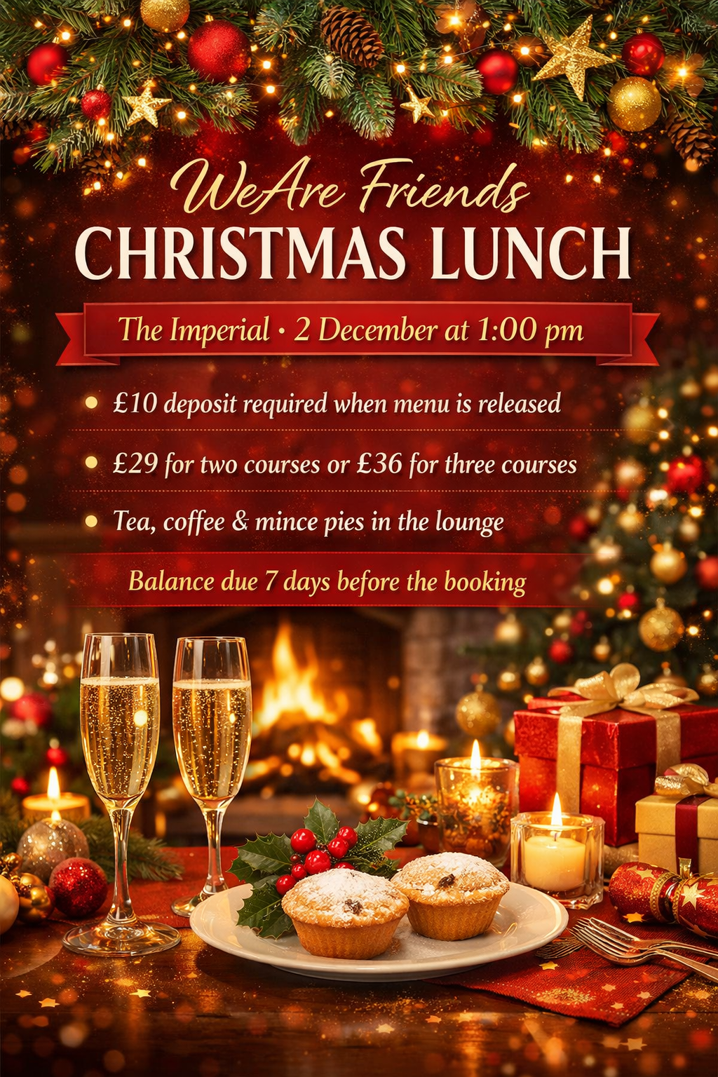 🍴✨ Join us for the much-loved Friends Together Lunch on the first Monday of each month—enjoy a delicious two-course meal, tea, coffee, and a friendly raffle for just £5! ☕🎟️ Book now: 📞 Pat at 01237 424917.